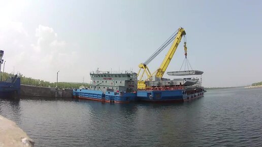 Плавучий кран "Могучий" / Кантовка створок шлюза