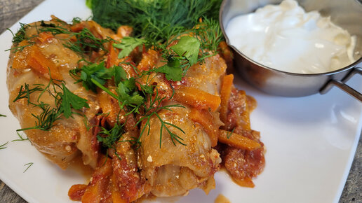 Готовим голубцы из молодой капусты с поджаркой и сметанкой.