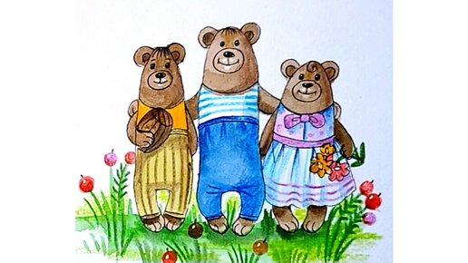π»π»π»ΠΠ»Π»ΡΡΡΡΠ°ΡΠΈΡ ΠΊ ΡΠΊΠ°Π·ΠΊΠ΅ "Π’ΡΠΈ ΠΌΠ΅Π΄Π²Π΅Π΄Ρ", Π½Π°ΡΠΈΡΠΎΠ²Π°Π½Π½Π°Ρ ΠΌΠ°ΡΠΊΠ΅ΡΠΎΠΌ ΠΈ ΠΊΡΠ°ΡΠΊΠ°ΠΌΠΈ.