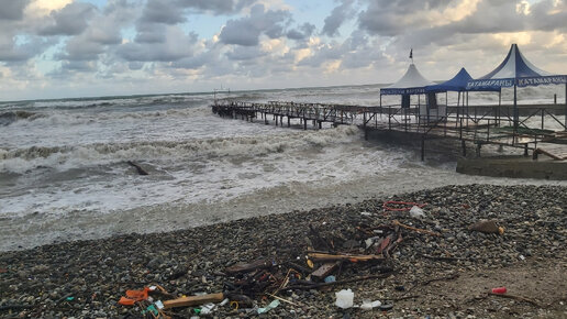 28.07.23 Архипо Осиповка. Шторм. Пляж закрыт. В море плавает мусор, бревна, зонтики с пляжа.