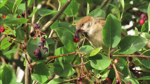 Воробей ест иргу...