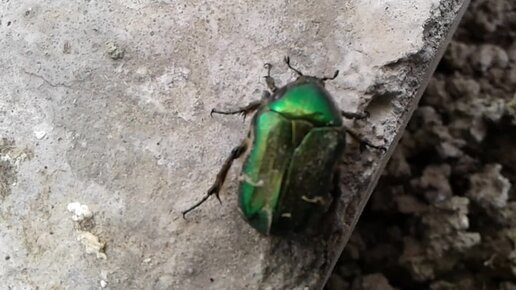 Встреча двух жуков. Майский жук и бронзовка, в теплице весной.
