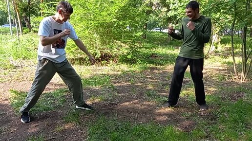 Обманка, ловушка ногой и "Маваши Гери " в прыжке. Отрабатываем в паре.
