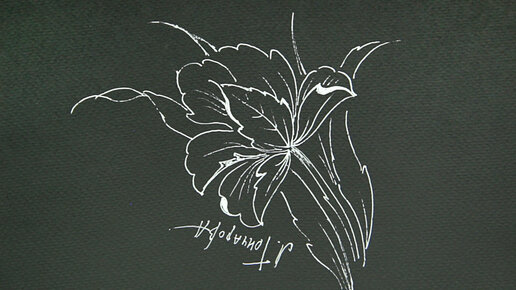 Цветок. Тюльпан. Как легко и просто нарисовать цветы. Скетчинг белым маркером по черному картону для начинающих