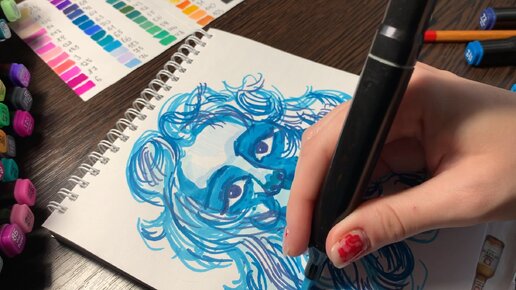 Рисуем скетч морской мадам цветными маркерами. Настоящее залипалово!