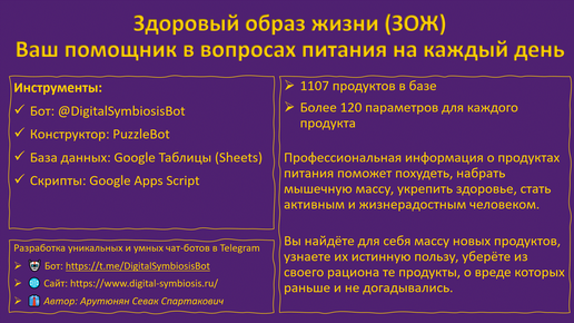 Здоровый образ жизни (ЗОЖ). Ваш помощник в вопросах питания на каждый день в Телеграм боте.