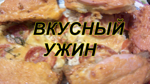 Собираю вкусный ужин.Запеканка с кабачком, помидором, курицей и горячими бутербродами с колбасой и сыром #еда