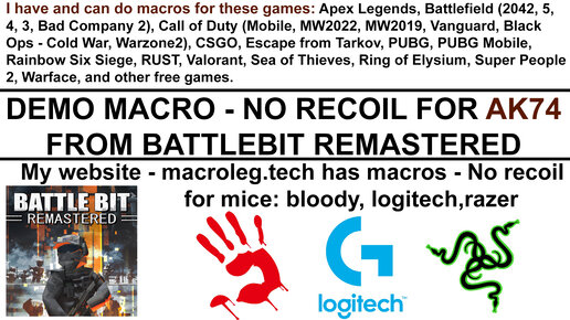 battlebit remastered - AK74. макрос - no recoil для logitech, razer, bloody