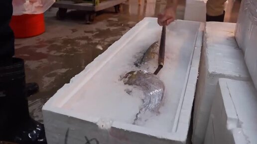 Остый нож для тунца. Умение и ловкость по нарезке крупной рыбы