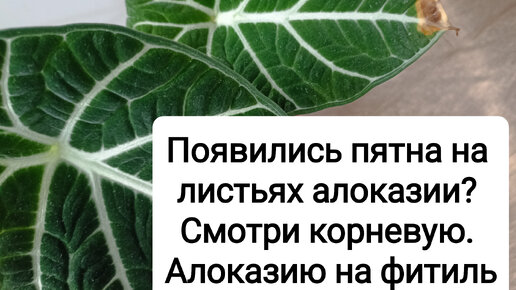 Появились пятна на листьях алоказии? Смотри корневую. Алоказию на фитиль. ККак я посадила клубень вверх ногами - не делайте так!
