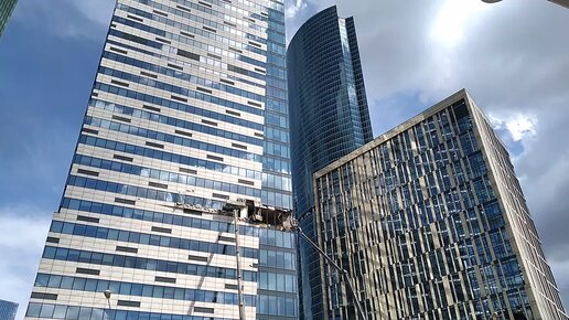 Повреждение башни в Москва Сити после атаки беспилотника