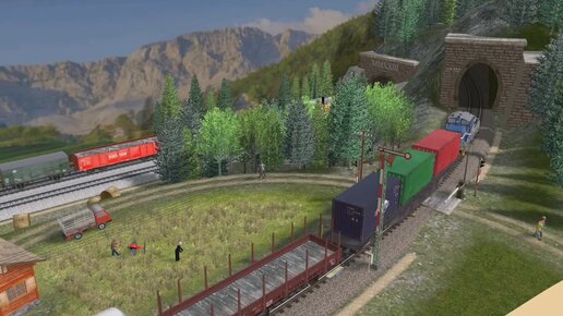 Анимационная модель жд макета под любой масштаб. Активное движение поездов. 3D моделирование макета железной дороги (ч.2) (векторный)