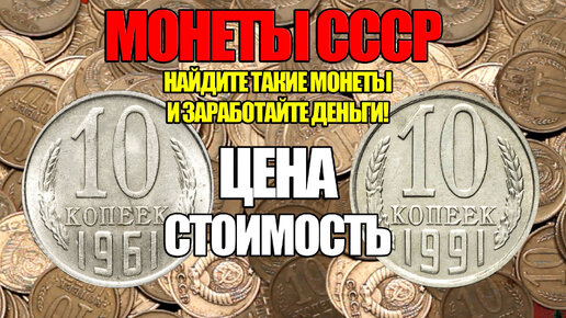 Просто найдите 10 копеек монеты СССР и заработайте сейчас, показываю разновидности и дорогие монеты, их стоимость на сегодня