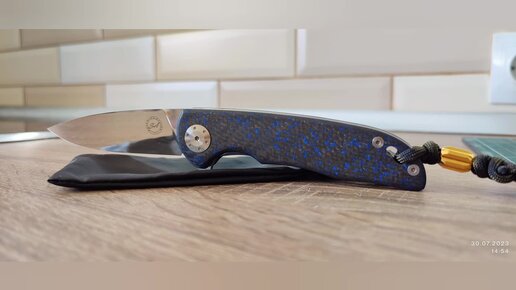 На продажу складной нож, сталь м398, рукоять карбон, клипса тимаскус.