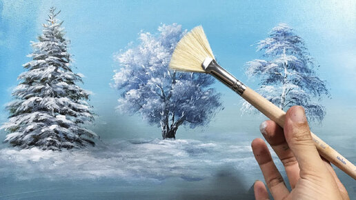 Живопись акрилом. Мастер-класс Как нарисовать красивое зимнее дерево с помощью веерной кисти. Елка. Дуб. Береза. Рисуем деревья