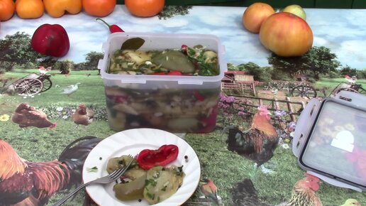 Баклажаны или кабачки маринованные с перцем и чесноком(по- быстрому)