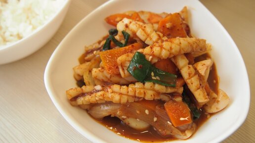 Традиционная корейская кухня: Оджино поккым (오징어 볶음) или жареный кальмар в остром соусе