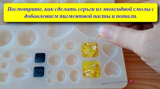 Посмотрите, как сделать серьги из эпоксидной смолы с добавлением пигментной пасты и потали.