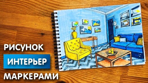 Как нарисовать интерьерный скетчинг маркерами | Рисунок для начинающих поэтапно и легко