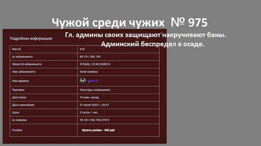 Чужой среди чужих [2023 Год.] № 975. В Осаде.Бан лист.Гл. админы своих защищают накручивают баны.№2
