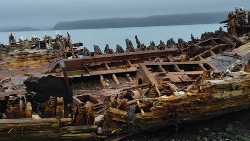 Остатки корабля на побережье Баренцева моря. Мотовский залив
