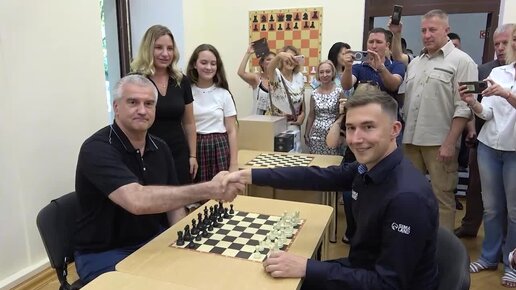 Аксенов и Карякин посетили школу по шахматам и шашкам в Симферополе