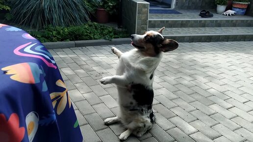 Акробатическое упражнение "зайка" в исполнении самой голодной и ленивой на свете корги Тильды