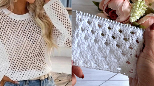 Узор "Сетка" спицами. Для легких, летних маечек, топов, кофточек. Мастер-класс.