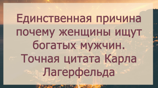 Единственная причина почему женщины ищут богатых мужчин. Точная цитата Карла Лагерфельда