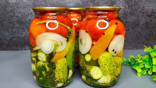 Вкуснейшие огурцы с помидорами на зиму без стерилизации: съедаются моментально и до зимы не остаются (даже рассол выпивается)