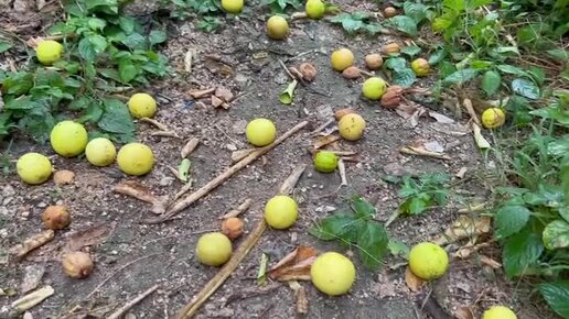 Урожай лаймов. Желтые лаймы осыпались сдерева