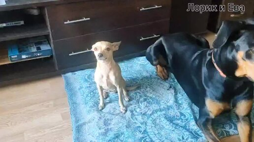 Доберман и той-терьер. Команда "место". Встречаем папу.