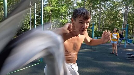 Двоечка, боковой и вертушки ногами. Краткий обзор тренировки с растяжкой.