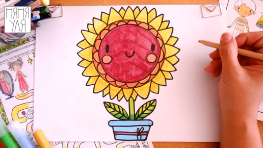 Как нарисовать ПОДСОЛНУХ поэтапно для детей | Рисуем цветы Летний рисунок | Няня Уля