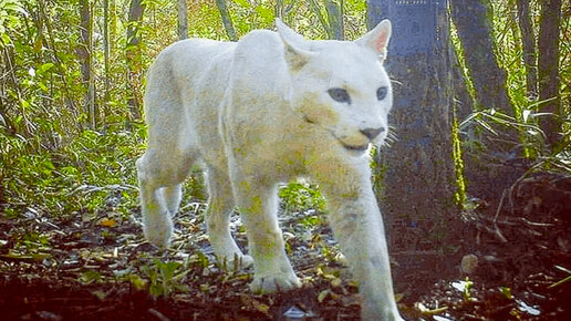 Фотоловушке удалось заснять редчайшую белоснежную пуму