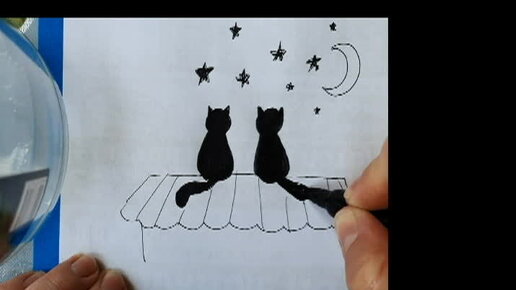 Рисуем кошки на крыше, черной ручкой, легко и просто
