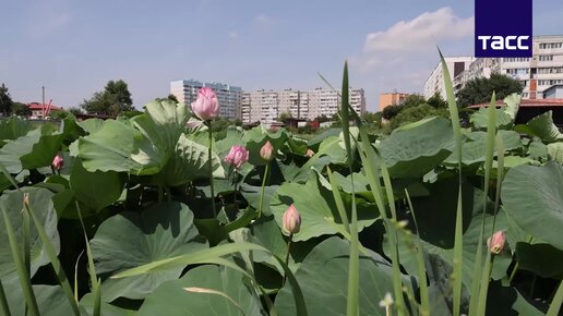 Цветение лотосов Комарова на озере в поселке Сиреневка Приморского края