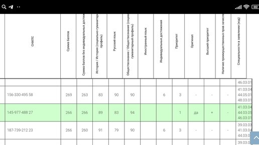 Конкурсный список на политологию. Позиция 60 попадает на бюджет, где всего 6 мест.