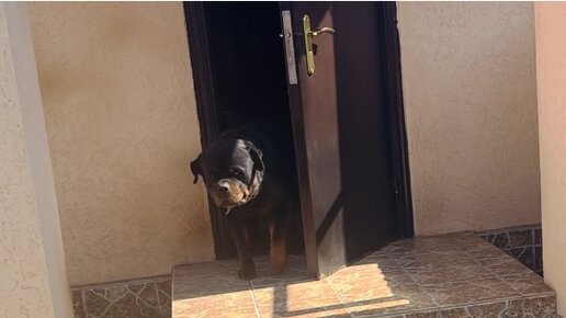 Ротвейлер очень радостно встречает хозяйку после работы