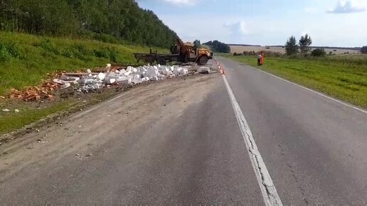 Грузовик со стройматериалами опрокинулся на трассе