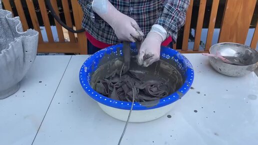 Невероятная поделка для сада из остатков цемента и куска старой ткани.