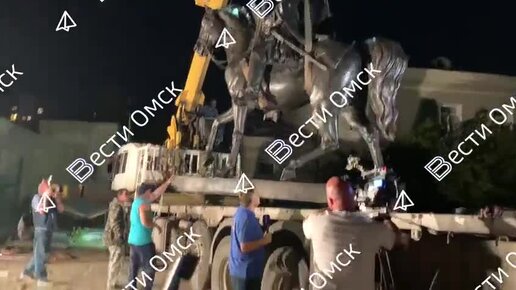 Первые кадры установки на постамент памятника основателю Омска Ивану Бухгольцу