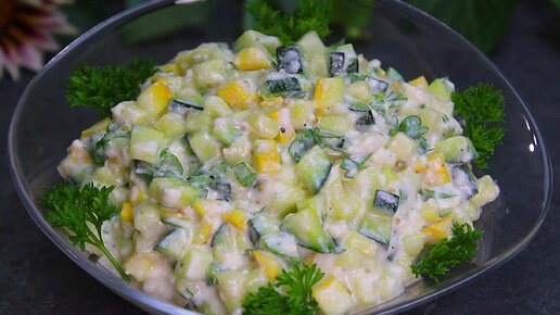 Нарезаю два кабачка, заливаю кипятком и через 15 минут вкусный салат на столе (делюсь необычным рецептом)