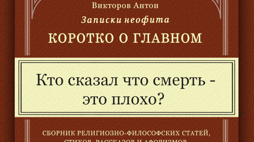 Кто сказал что смерть это плохо? / Веды, философия, религия, психология, наука.
