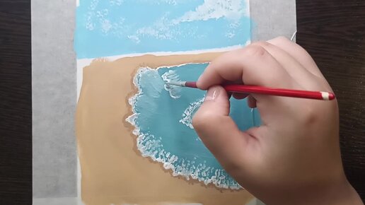 Пытаюсь гуашью нарисовать берег моря