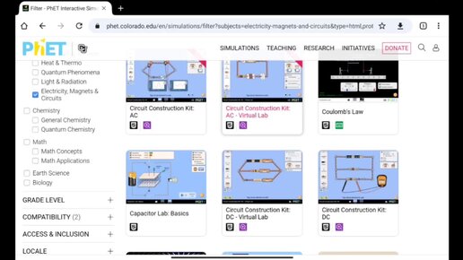 Виртуальная лаборатория Phet. Знакомство с платформой и функционал интерактивных симуляторов