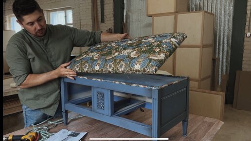 Обтяжка пуфа ручной работы от мебельной мастерской Ladygin
