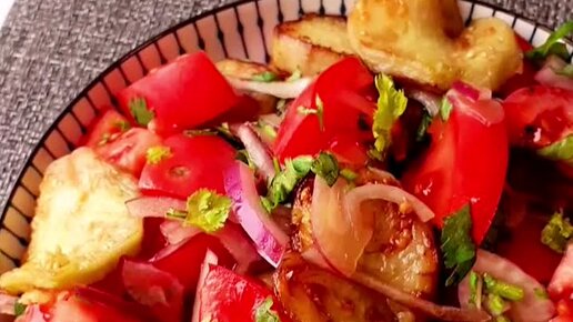 Теплый салат с баклажанами.