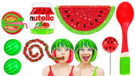 Розовая и Зеленая Арбузная Еда Челлендж!