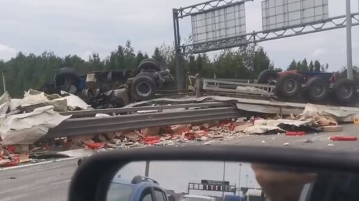 Фура с рыбой перекинулась через отбойник на юге КАДа из-за лопнувшего колеса. Пострадал шофер грузовика